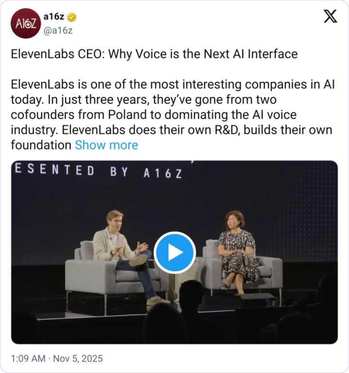 MatiStaniszewski是ElevenLabs的CEO,这是他在a16z的活动上的分享
